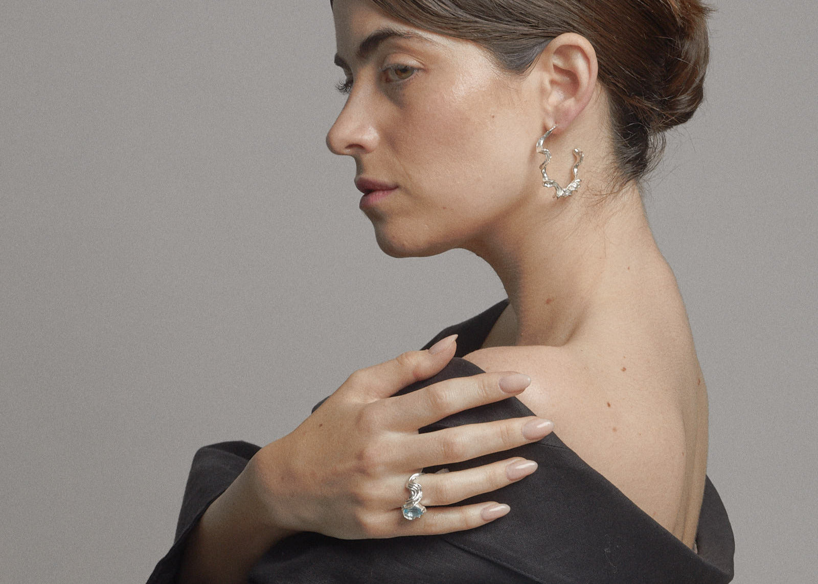 The Aurea Hoop Earrings are part of the Motus collection. They are entirely hand-carved in hard jewelry wax to preserve the moments spent observing how seaweed dances beneath the ocean waves.